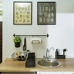 - ❓Există o bucătărie disponibilă la apartmentul Cosy Studio In Vitan pentru oaspeți?Da, apartmentul Cosy Studio In Vitan dotată cu o bucătărie complet utilată și oferă cuptor cu microunde, aparat de cafea/ceai și frigider.